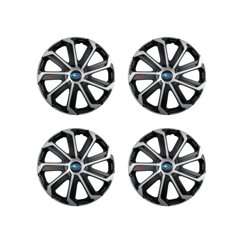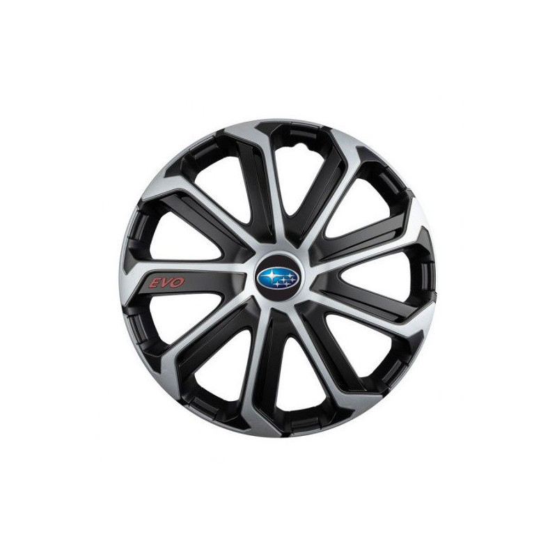 Puklice 16 Evo black&silver pre Subaru na ocelové disky. Pre kolesá o veľkosti R16 so živicovými samolepkami Subaru.Címzett :