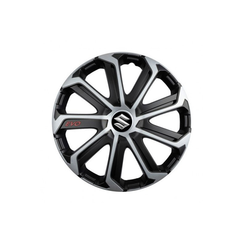 Puklice 16 Evo black&silver pre Suzuki na ocelové disky. Pre kolesá o veľkosti R16 so živicovými samolepkami Suzuki.Címzett :