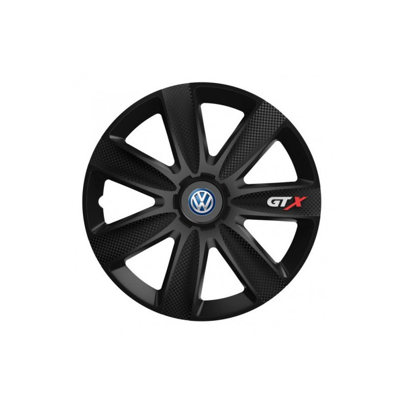 Puklice 15 GTX CARBON black pre VW (modré) na ocelové disky. Pre kolesá o veľkosti R15 so živicovými samolepkami VW (modré).Címzett :