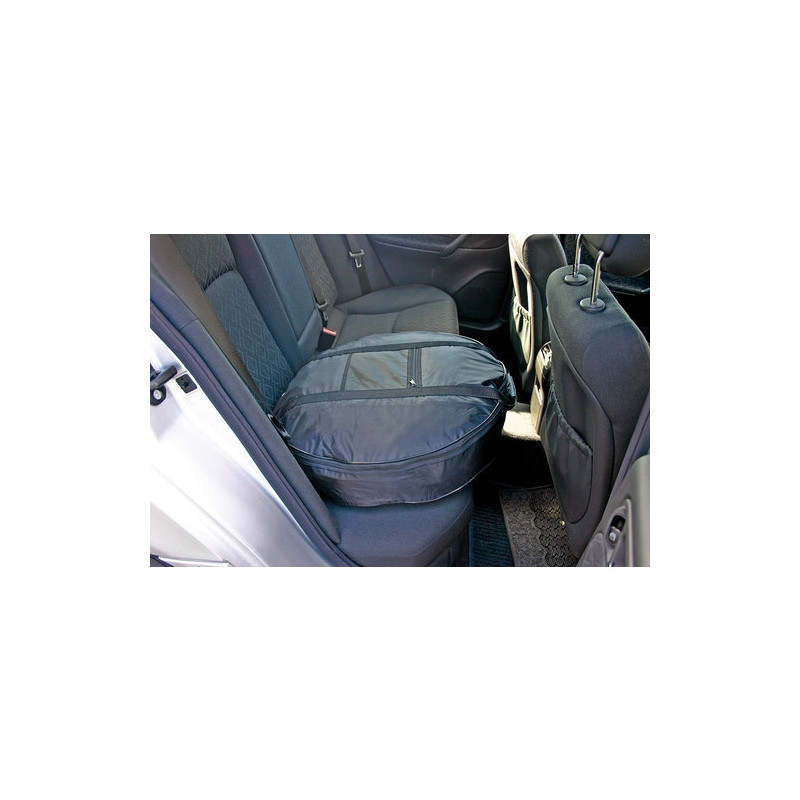 Taška na rezervné koleso so zipsom a rukoväte na prenášanie pri preprave rezervného kolesa do kufra.