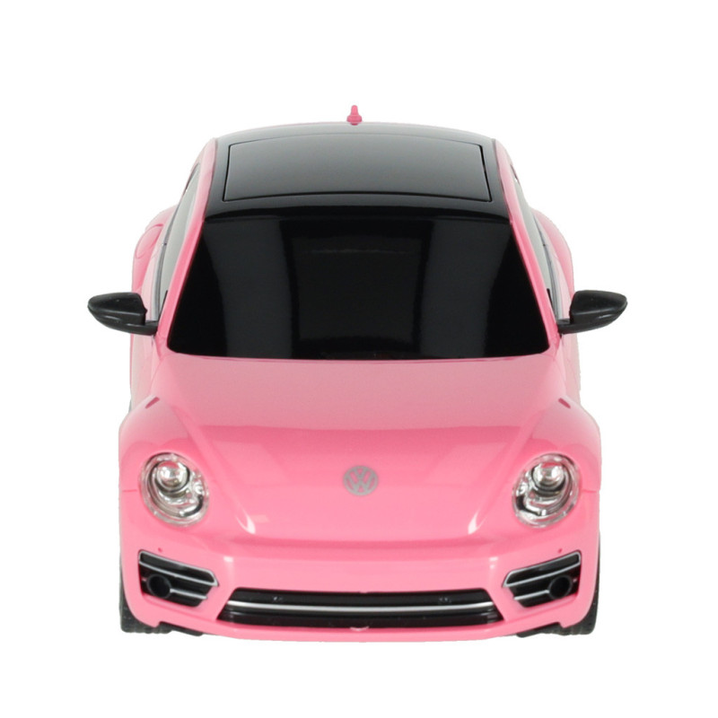 RC auto Volkswagen Beetle od značky Rastar v mierke 1:24 je štýlový model legendárneho vozidla v ružovej farbe. Vyznačuje sa typickým dizajnom pôvodného Beetle – zaoblenými líniami karosérie, logom Volkswagenu a nápadným farebným prevedením.