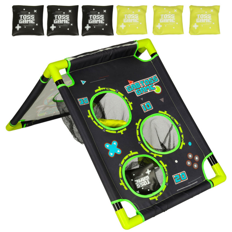 Zábavná hra „Hod na cieľ“ je ideálna pre deti, ktoré milujú súťaženie a pohyb. Cieľom hry je trafiť textilnými vrecúškami do otvorov na plátne – každý otvor má inú bodovú hodnotu, čo umožňuje hrať aj na presnosť, aj na body. Vďaka dvom farbám vrecúšok môžu deti hrať v tímoch alebo súťažiť medzi sebou.