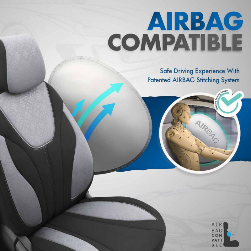 Štandardné poťahy majú certifikovaný šev AIRBAGový, vďaka čomu sú vhodné pre autá s bočnými airbagmi v sedadlách, ako aj pre štandardné sedadlá. Vďaka použitiu špeciálneho švu pokrývajú sedadlá úplne bez toho, aby narúšali prácu AIRBAGOV.