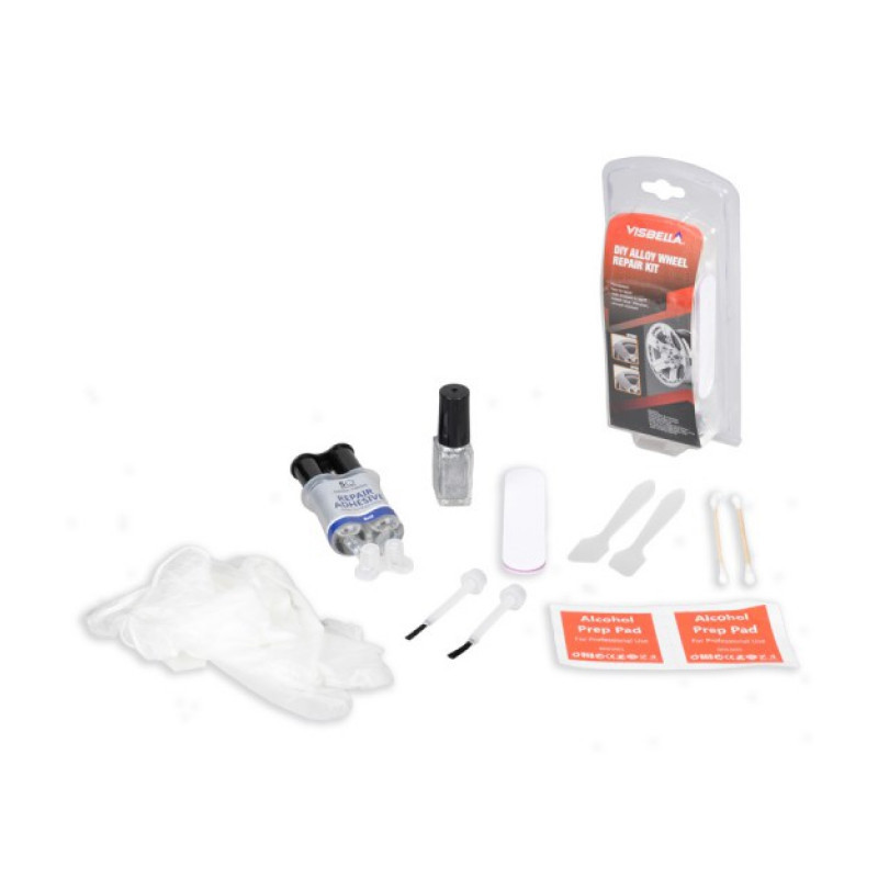 Súprava na opravu zliatinových diskov Visbella je určená na opravu trvalých poškodení od obrubníkov, škrabancov, drobných otrasov, poškodenia pri montáži, a iných poškodení zliatinových kolies. Syntetické kolesá, oceľové ráfiky a kryty nábojov a mnoho ďalších v podobnom povrchovom materiáli. Súprava obsahuje všetko, čo potrebujete na opravu odrenín a škrabancov.