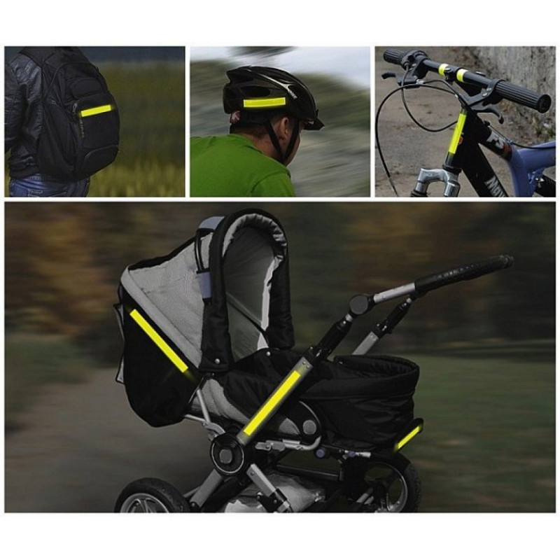 Výstražný reflexná doplnok na nalepenie, dobre viditeľný na veľkú vzdialenosť. Ide&´lne na nalepenie na kočík, bicykel, detskú trojkolku, školské tašku, na prilbu alebo iný predmet.