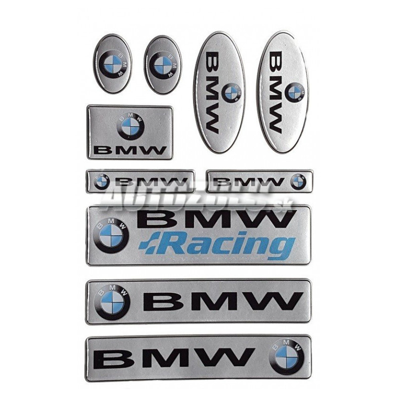 Sada živicových nálepiek BMW rôznych rozmerov.