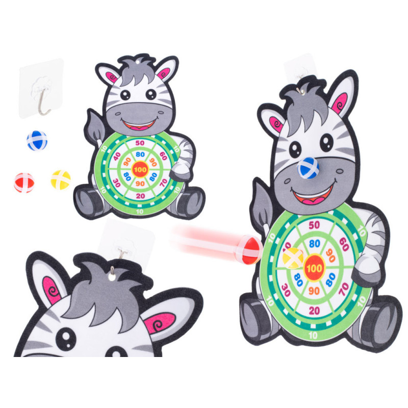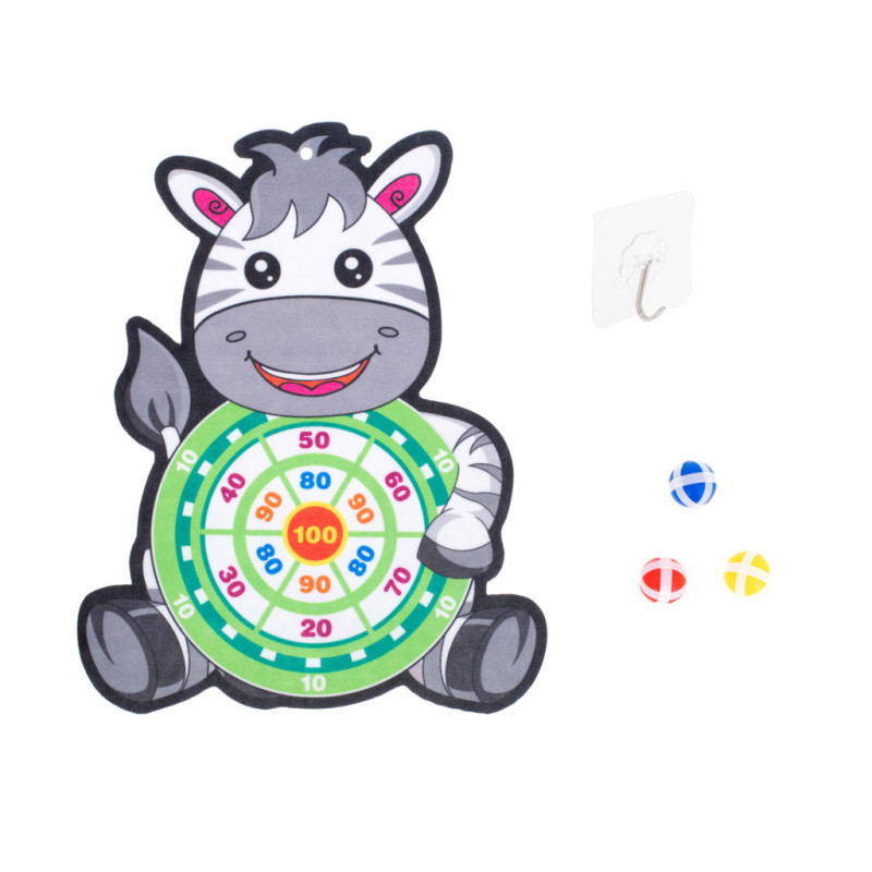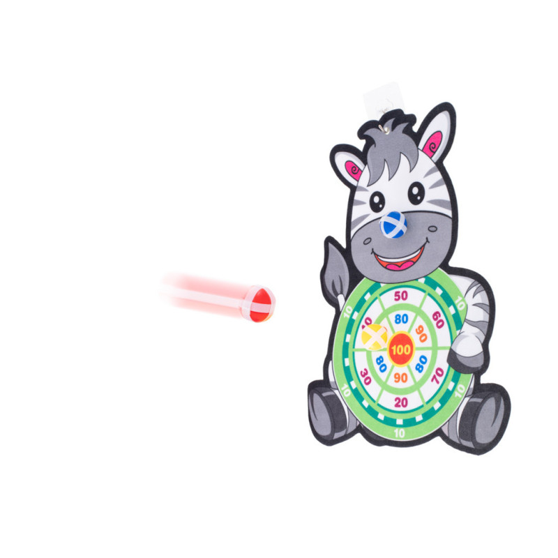 Bezpečný terč s veselým motívom zebry je skvelou alternatívou ku klasickým šípkam, vytvorený špeciálne pre deti. Hra rozvíja presnosť, koordináciu a prináša veľa zábavy!