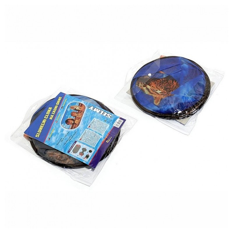 Slnečná clona s prísavkou na zadné okno automobilu. Spôsob perforácie materiálu zaisťuje absorpciu cca 70% slnečných lúčov. Po použití je možné clonu pohodlne zložiť späť do obalu.