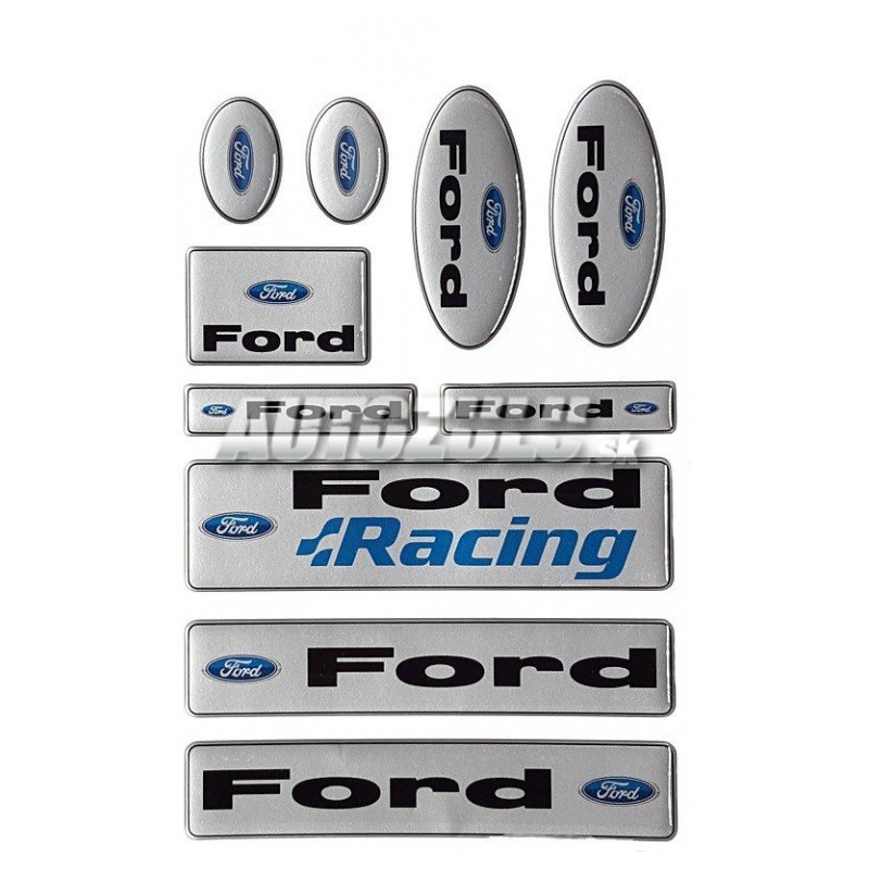 Sada živicových nálepiek Ford rôznych rozmerov.