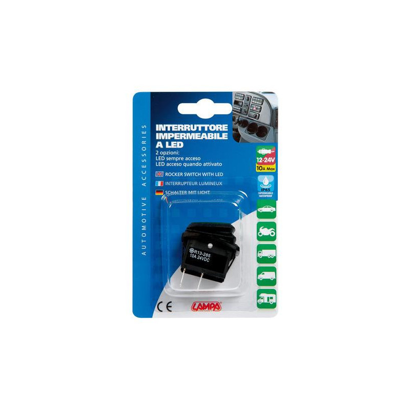 Spínač so zeleným indikátorom, vodotesný 10A 12/24V
