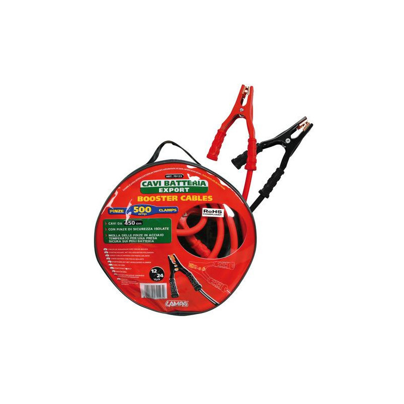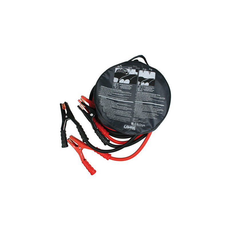 Max. prúd 500 ampér, dĺžka 4,5 metra. V uzatvárateľnom obale. Neobsahuje žiadne prísady iných kovov, ktoré znižujú účinnosť štartovacích káblov. Návod na použitie: Spoj každým káblom rovnaké póly na akumulátoroch pomocného vozidla i vozidla ktoré je potrebné naštartovať. Keď sa nechajú káble chvíľu pripojené, oživí sa akumulátor vozidla, ktoré chceme naštartovať. Môžeš štartovať vozidlo okamžite po pripojení. Upozornenie: Venuj pozornosť riadnemu spojeniu klieští s pólmi batérie. Samotné káble a kliešte majú dostatočný prierez na prechod aj vyššieho prúdu ako je uvedený maximálny prúd. Kritickým miestom s najmenšou priechodovou plochou a z toho dôvodu aj miestom s najväčším elektrickým odporom býva práve dotykové miesto klieští s pólmi batérie. Pri veľmi malej ploche vzniká v tomto mieste veľký prechodový odpor s následným prehriatím a je možný aj vznik elektrického oblúka, ktorý poškodí miesto dotyku.