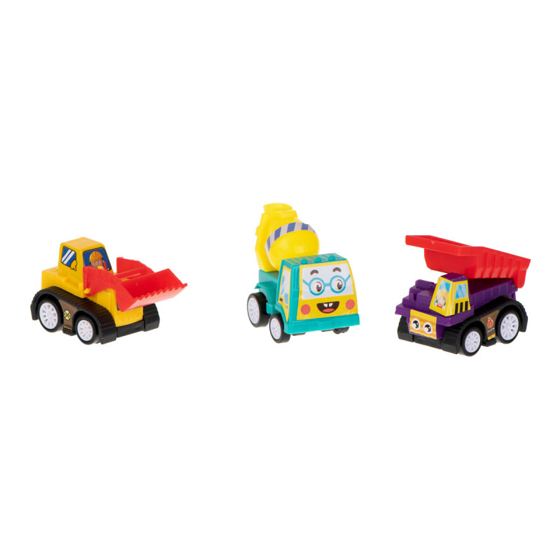 Objavte súpravu 6 malých stavebných vozidiel, ktoré potešia každého malého fanúšika techniky a strojov. Autíčka sú navrhnuté pre najmenších a vybavené zotrvačníkovým pohonom – stačí ich potlačiť a samé sa rozbehnú!