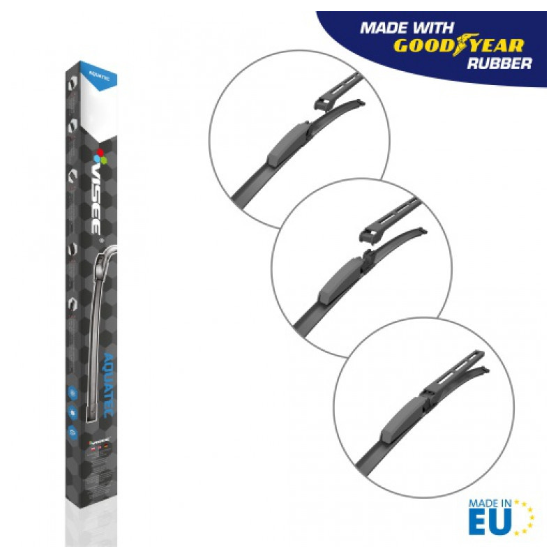 Stierače sú vyrobené z vulkanizovanej vysoko kvalitnej prírodnej gumy, obohatenej o aditíva, ktoré prispievajú k výnimočnej odolnosti voči UV žiareniu, striedaniu teplôt a tiež treniu. Vynikajúca trvanlivosť vďaka svojim nožom z kaučukových zmesí AQUATEC. Moderný dizajn stieračov prispieva k množstvu požadovaných vlastností ako napríklad nízka hlučnosť pri stieraní, vysoká aerodynamická efektívnosť pri vysokých rýchlostiach, stieranie po celej dĺžke stierača resp. okna.