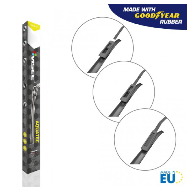 Stierače sú vyrobené z vulkanizovanej vysoko kvalitnej prírodnej gumy, obohatenej o aditíva, ktoré prispievajú k výnimočnej odolnosti voči UV žiareniu, striedaniu teplôt a tiež treniu. Vynikajúca trvanlivosť vďaka svojim nožom z kaučukových zmesí AQUATEC. Moderný dizajn stieračov prispieva k množstvu požadovaných vlastností ako napríklad nízka hlučnosť pri stieraní, vysoká aerodynamická efektívnosť pri vysokých rýchlostiach, stieranie po celej dĺžke stierača resp. okna.