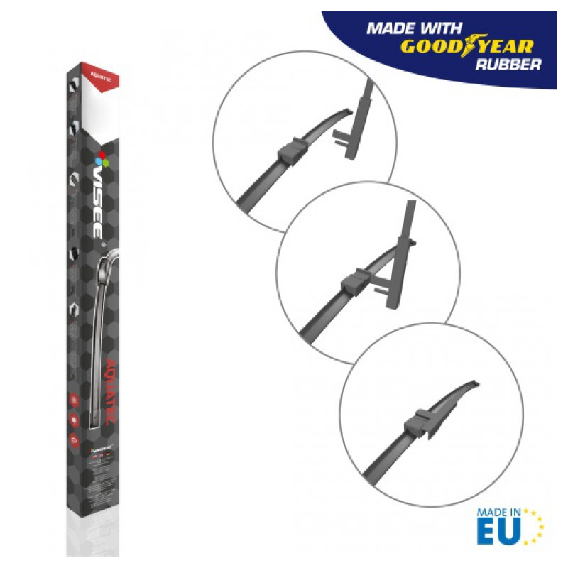 Stierače sú vyrobené z vulkanizovanej vysoko kvalitnej prírodnej gumy, obohatenej o aditíva, ktoré prispievajú k výnimočnej odolnosti voči UV žiareniu, striedaniu teplôt a tiež treniu. Vynikajúca trvanlivosť vďaka svojim nožom z kaučukových zmesí AQUATEC. Moderný dizajn stieračov prispieva k množstvu požadovaných vlastností ako napríklad nízka hlučnosť pri stieraní, vysoká aerodynamická efektívnosť pri vysokých rýchlostiach, stieranie po celej dĺžke stierača resp. okna.