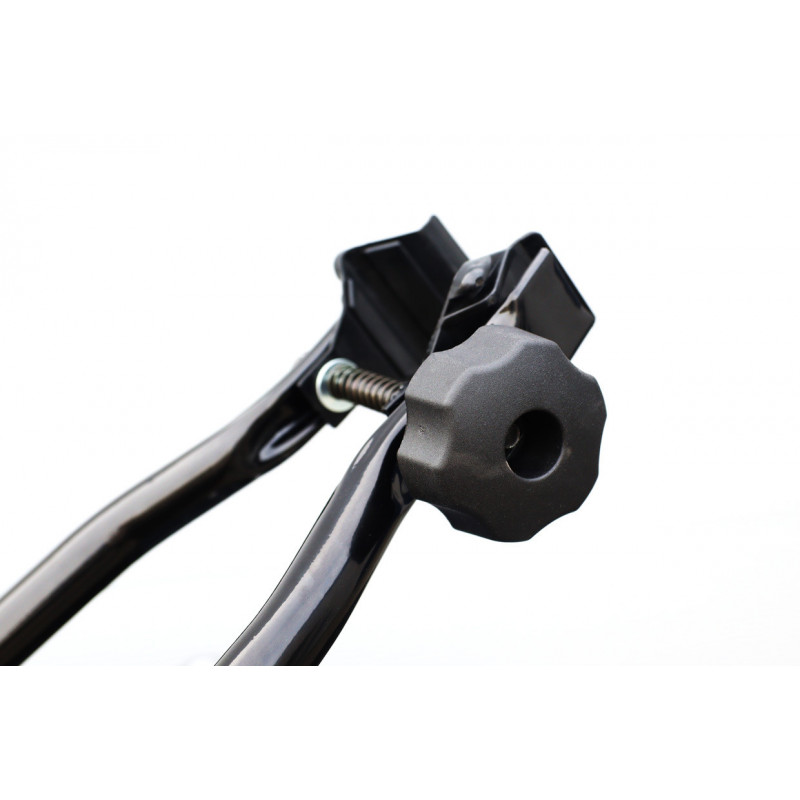 Praktický a ľahký oceľový držiak bicyklov je určený pre montáž na strešný nosič (tyče) auta.