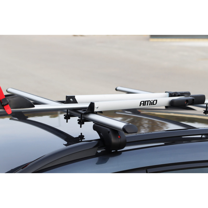 Praktický a ľahký hliníkový držiak bicyklov je určený pre montáž na strešný nosič (tyče) auta.