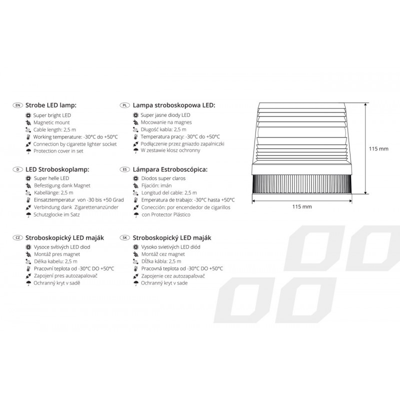 Vrátane ochranného krytu Rozmery Majáka: Šírka: 115 mm Výška: 115 mm
