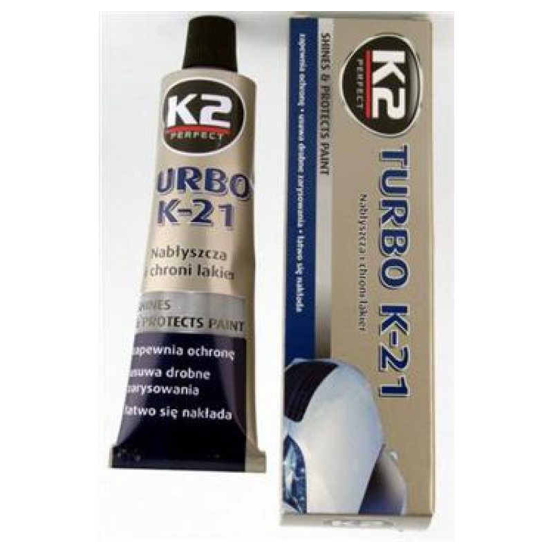 K2 TURBO K-21 - regeneračná pasta s voskom. Carnauba Vosk Carnauba je najtvrdší prírodný vosk na svete, získavaný z paliem. V TURBO K-21 je špeciálnou technológiou vosk Carnauba mäkčený, takže sa veľmi ľahko nanáša na karosérie, a po vyleštení opätovne tvrdne, čo zabezpečuje dlhotrvajúcu ochranu a zrkadlový lesk. TURBO K-21 tiež dokonale odstraňuje drobné ryhy, škrabance a poškodenia laku.