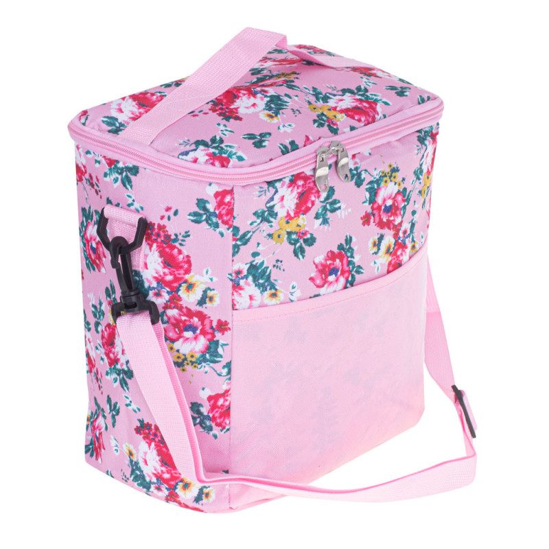 Termo taška na obed na plážový piknik 11L ružová s kvetmi