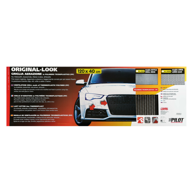 ► Sito vhodné do prednej masky ► Rozmery sita: 120 x 40 cm ► Rozmery oka: 8 x 18 mm (malý hexagon) ► Materiál: termoplast ► Farba: čierna