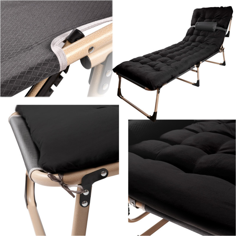 Vďaka 4-stupňovej regulácii operadla sa dá používať ako pohodlné ležadlo, kreslo alebo plnohodnotné lôžko. Matrac s bavlnenou výplňou poskytne komfort aj počas dlhších pobytov v prírode. Lôžko má kompaktné rozmery po zložení, vďaka čomu je jednoduché na prenášanie a skladovanie.