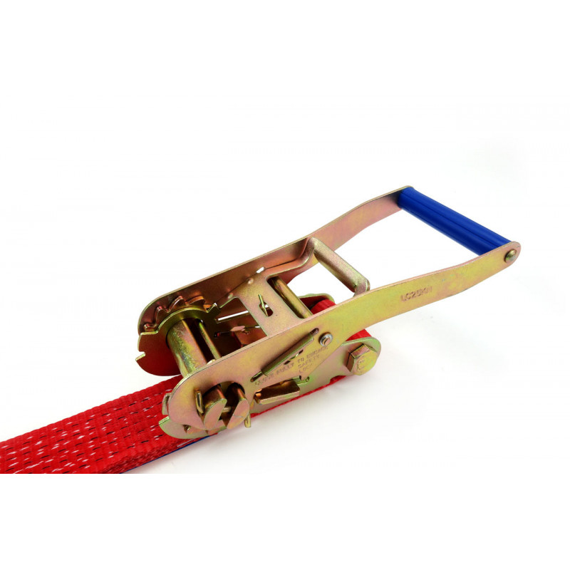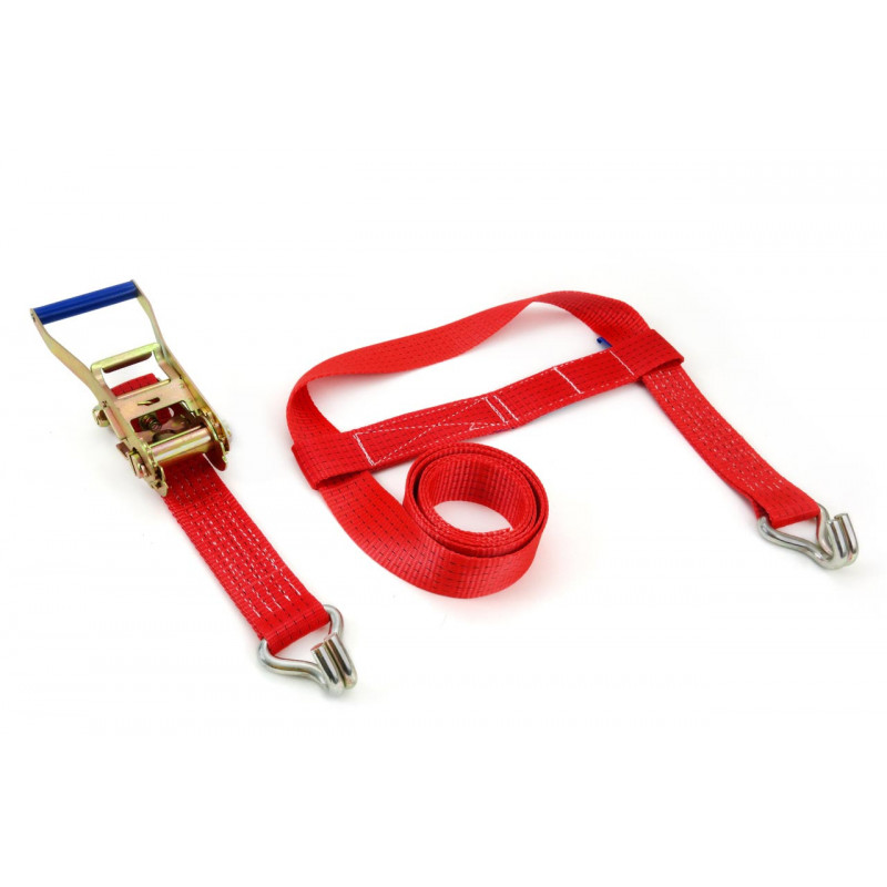 Upínací popruh s kovovou račňou, dĺžka 5 m, šírka 25 mm.