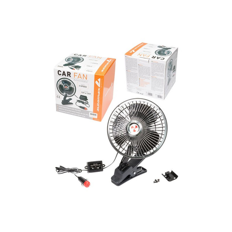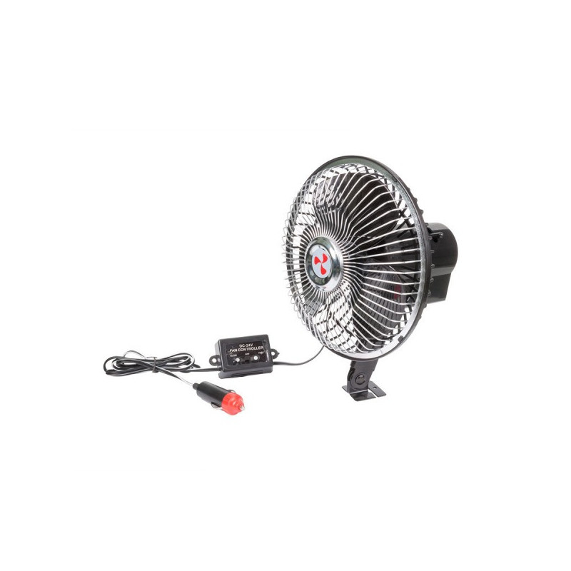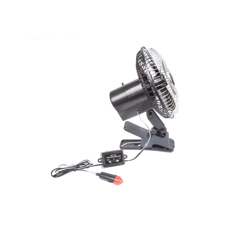 Ventilátor do auta 24V s dvomi rýchlosťami FAST/SLOW vhodný pre vozidlá bez klimatizácie, prípadne pre vozidlá kde výkon klimatizácie nie je dostačujúci, použiteľný na Vami vybranom mieste kde je ho možné pripojiť pomocou zásuvky zapalovača.