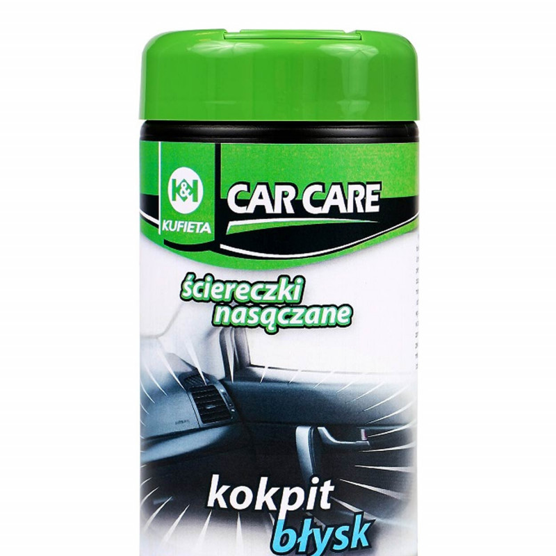 Vlhké utierky z kokpitu na všetky plastové a vinylové povrchy vo vnútri vozidla.