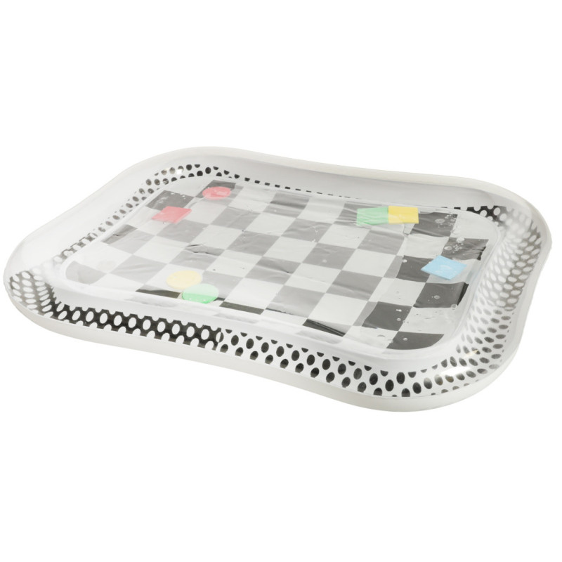 Vodná nafukovacia podložka kontrastná čierna a biela šachovnica 65 cm x 50 cm.