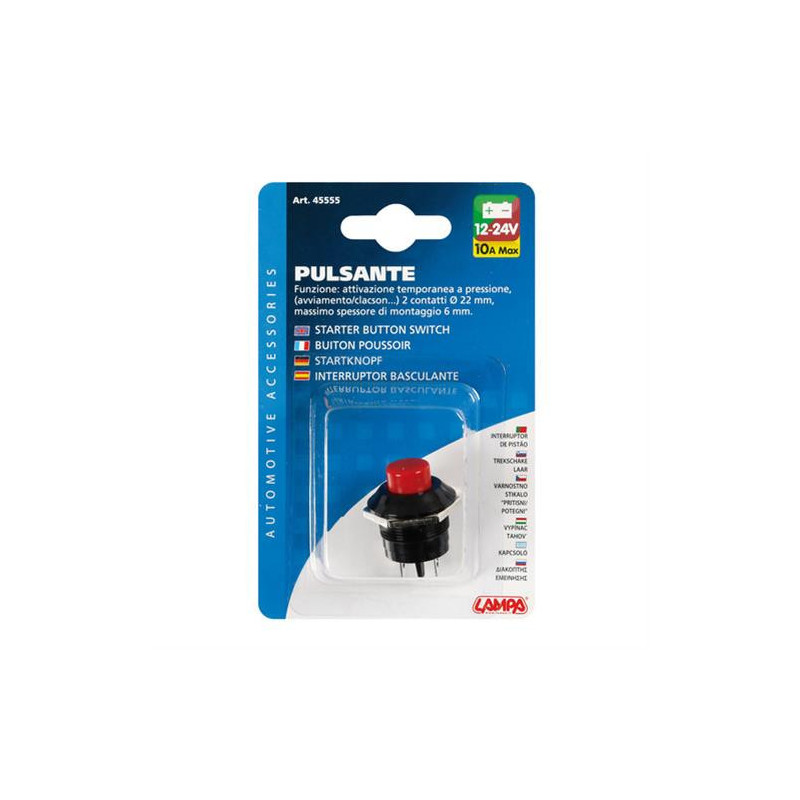 Vypínač tlačítkový červený, 12/24 V 10 A