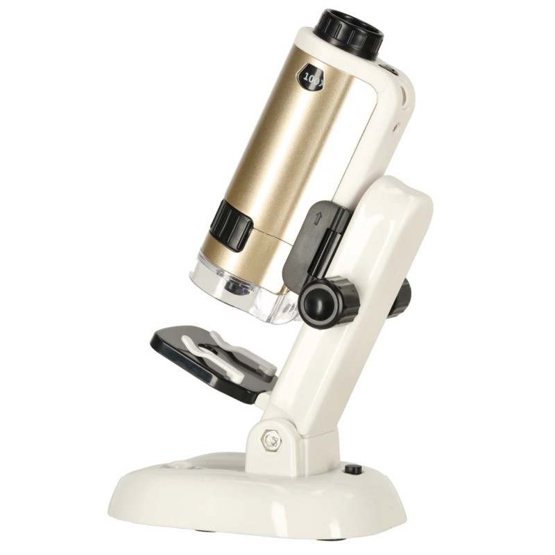 Mikroskop má dva stupne zväčšenia – 100× a 250×, vďaka čomu umožňuje detailné pozorovanie štruktúry materiálov. Pevný stojan s LED osvetlením zabezpečuje stabilitu a správne podsvietenie vzorky počas pozorovania.