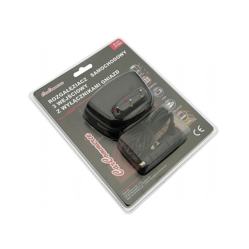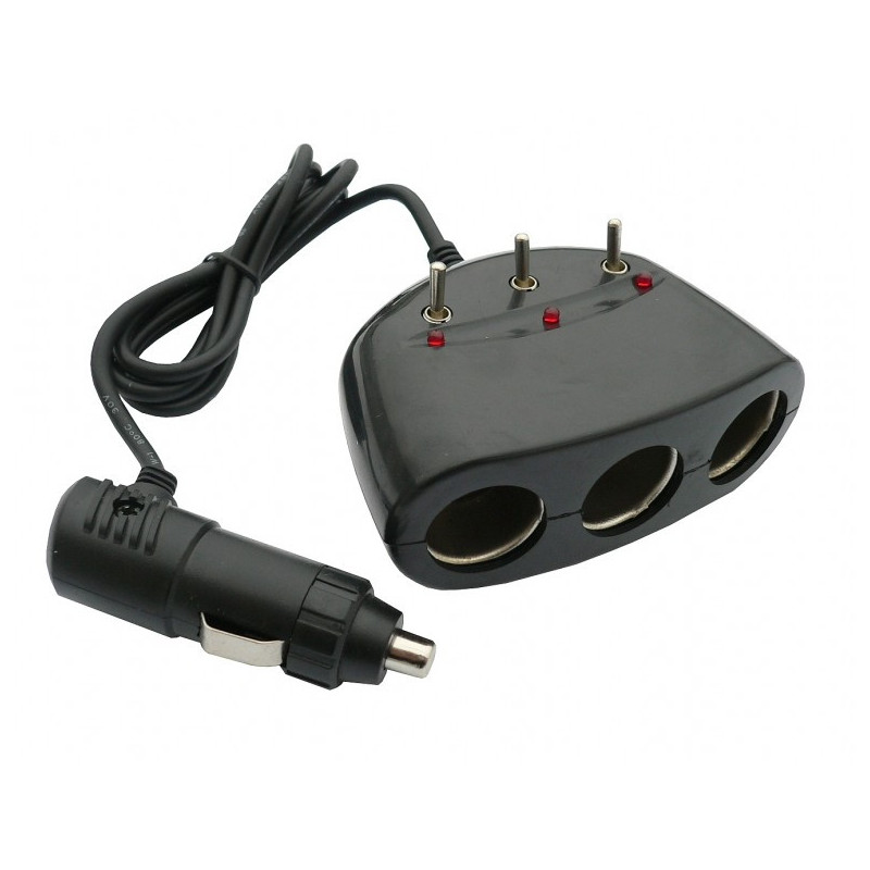 Zástrčka zapaľovača - rozdvojka 12 Rozmery: VSTUP ---> 12/24 V - standard VÝSTUP ----> 3 x 12/24 V - standard - 10 A max S vypínačmi