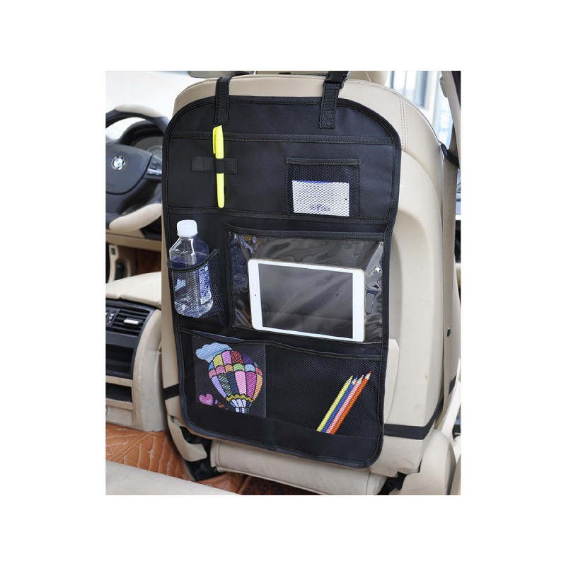Ponúka priestor pre ukladanie drobností, hračiek a občerstvenia, čím pomáha udržiavať Vaše vozidlo upratané a deti tak majú všetko potrebné na dosah ruky a pod kontrolou. Jednoducho pripojte k sedadlu vodiča alebo spolujazdca. Organizér zároveň chráni predné sedadlo pred znečistením špinavými topánkami detí. Uchytáva sa na zadnú časť predného sedadla dodanými popruhmi. Je vyrobený z odolného materiálu.