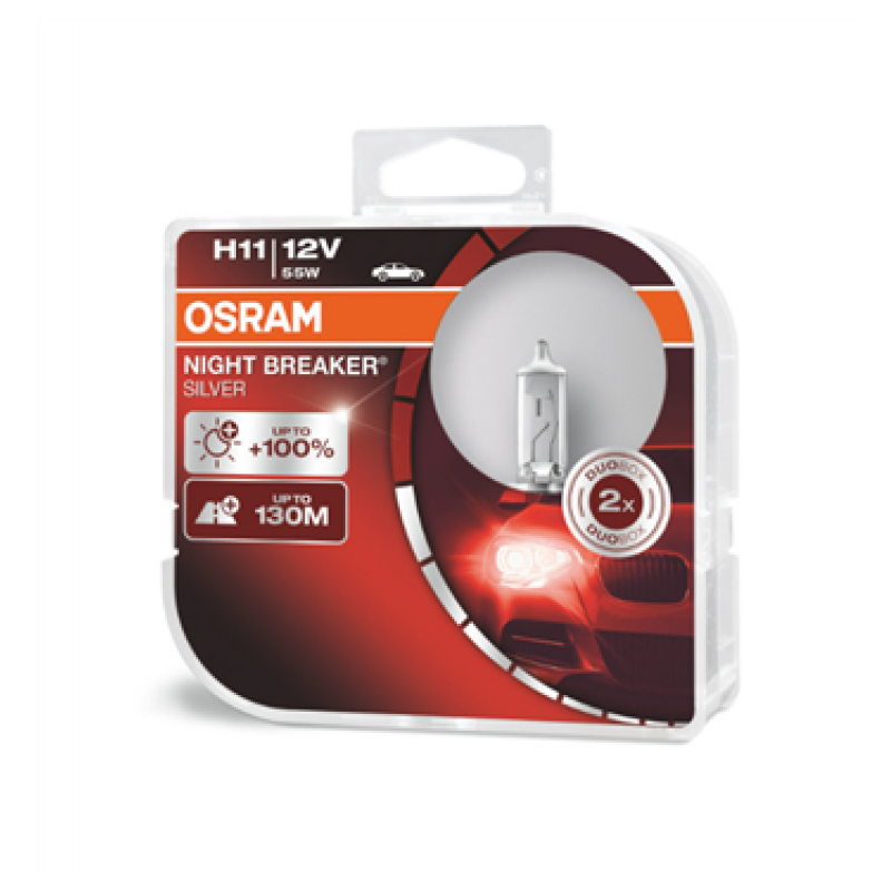 S radou NIGHT BREAKER SILVER ponúka OSRAM výkonné halogénové žiarovky s optimalizovanou životnosťou. OSRAM NIGHT BREAKER SILVER vytvára až o 100% viac svetla v porovnaní so štandardnými žiarovkami a lúčom, ktorý je dlhý až 130 metrov. To vám umožní skôr zaznamenať dopravné značenie, prekážky či nebezpečenstvo a zostáva vám tak viac času na reakciu. Okrem toho majú tieto automobilové žiarovky presvedčivý pomer ceny a výkonu a taktiež moderný dizajn s atraktívnym strieborným viečkom (H4 / H7 / H11). Perfektná voľba pre vodičov, ktorí kladú vysoké nároky na výkon a životnosť.